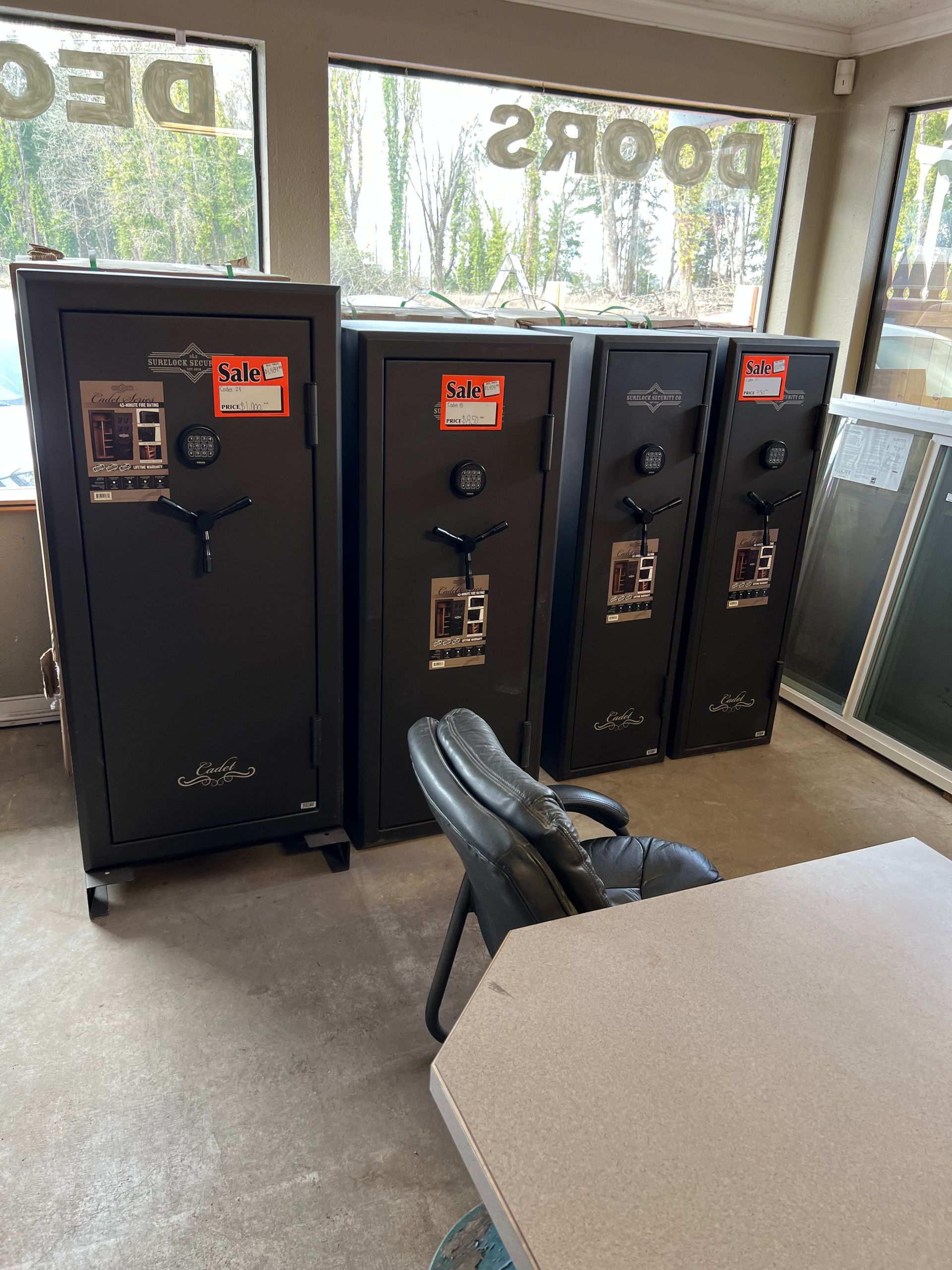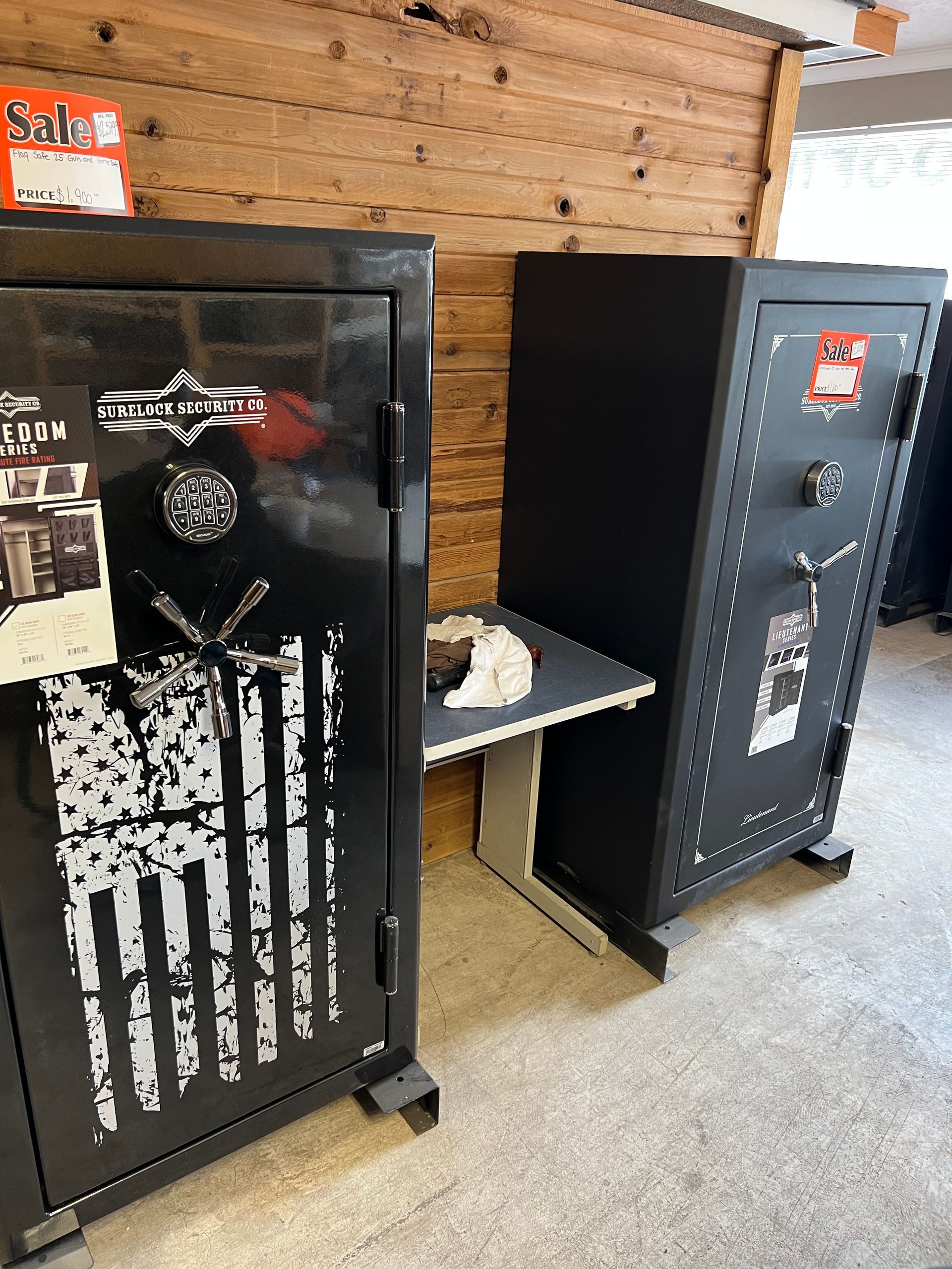 These Home safes are scratch and dents, they have no warranty sold as is. All the components are in working order. Great savings from retail. Various sizes and prices come in to see what is available. Inventory changes all the time. What is the safety and security of your belongings worth?
